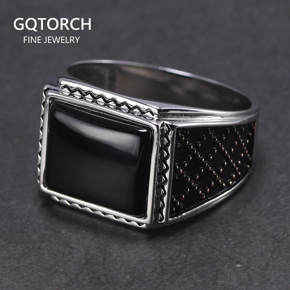 Genuine Solid Silver 925 Rings Man With Black Onyx Natural Stone Vintage Turkish Men's Rings Turkey