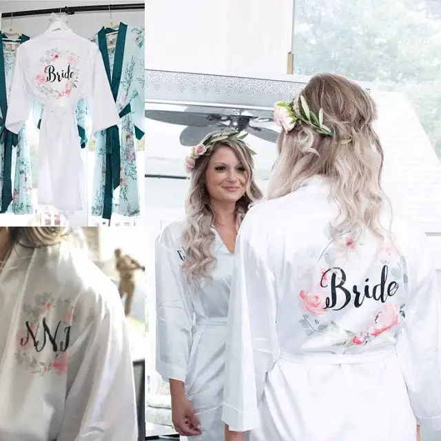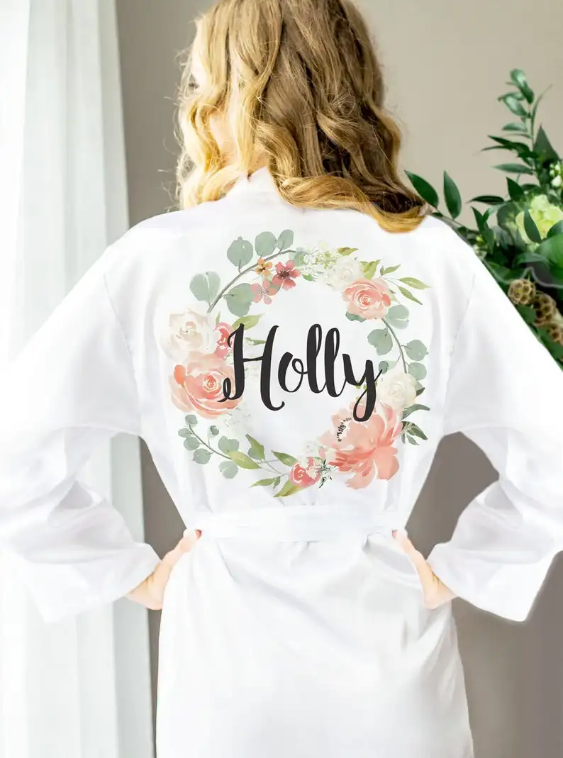 personalise name title Wedding Robes for Bride & Bridesmaids gifts Custom White floral bride robe B