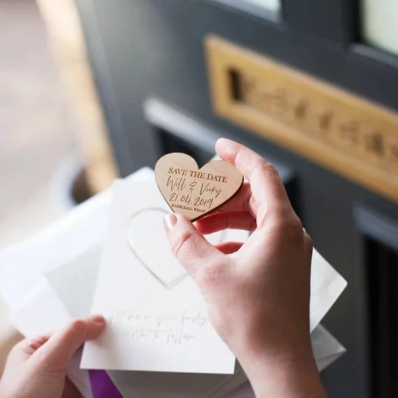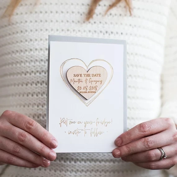 personalize names date engraved Wooden Card save the date Wedding invitations Magnets Save the Date