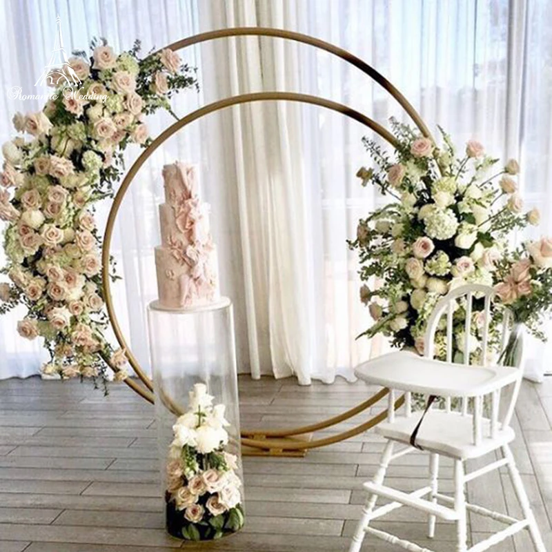 Round Gold Color Metal Arch Stand Support for Wedding Event Decoration Flower Stand Backdrop Modern